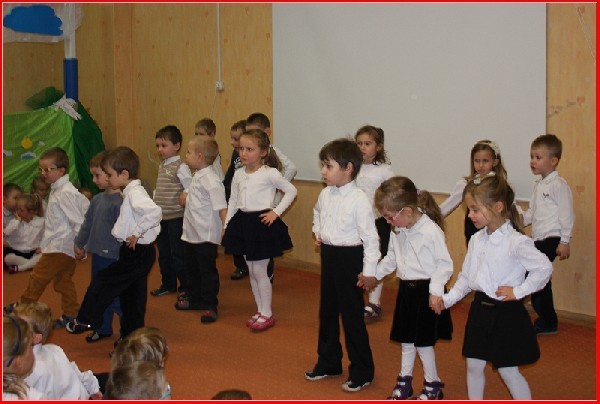 Na trzy dni przed Świętem Niepodległości, dzieci z naszego przedszkola zgromadziły się w sali gimnastycznej aby uczcić tę najważniejszą dla naszej ojczyzny rocznicę. Najpierw obejrzały inscenizację kukiełkową, w której głównym bohaterem był Mieszko I. Potem przedszkolaki z wszystkich grup zaprezentowały program artystyczny, na który składały się wiersze i piosenki o tematyce patriotycznej oraz obejrzały krótki film „Początki państwa polskiego” i prezentację „Polak mały”. Na zakończenie odśpiewały hymn narodowy.
